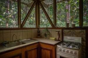 - Comfort Amidst the Canopy: Including a kitchenette equipped with a gas stovetop and oven, hot water shower, and a cozy balcony, this home blends rustic charm with essential comforts.